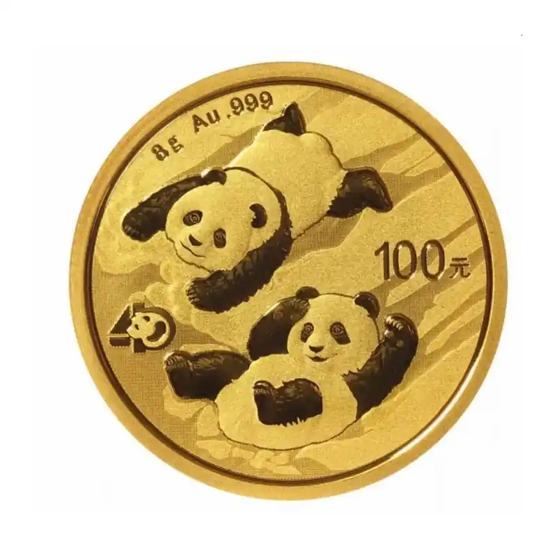 De Chinese Panda is een unieke munt die wordt geslagen door de People’s Bank of China in opdracht van de Chinese overheid. Het is tevens de enige gouden munt met een gewicht van 30 gram. Eén van de meer exclusieve munten onder de gouden munten en een collectors item. De Panda gouden munten serie wordt sinds 1983 geslagen en uitgegeven. De Panda munten zijn enorm populair onder beleggers en verzamelaars. De Panda 2021 editie heeft een gewicht van 8 gram in tegenstelling tot de gebruikelijke 1/4 troy ounce. De zuiverheid is onveranderd van voorgaande series en geeft nog steeds .999 aan. Op de voorkant van de gouden munt wordt een reuzenpand afgebeeld met een babypand hun natuurlijke habitat. Op de achterkant wordt de Temple of Heaven in Beijing weergegeven.