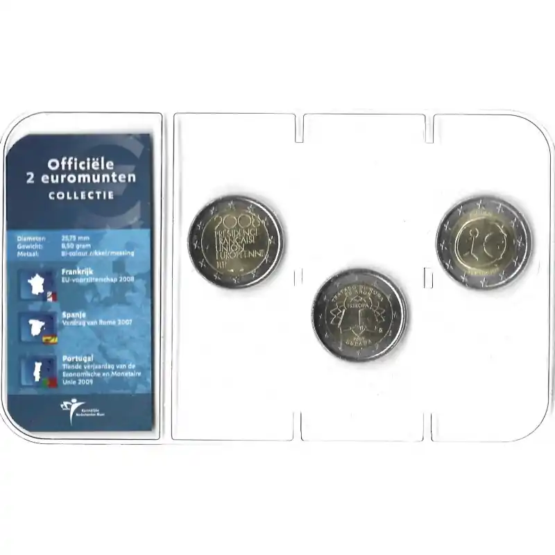 Officiële 2 Euromunten collectie KNM UNC Frankrijk 2008 – Spanje 2007 – Portugal 2009