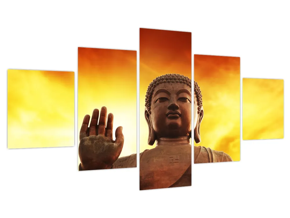 Premium Schilderij – Boeddha met rode en gele achtergrond