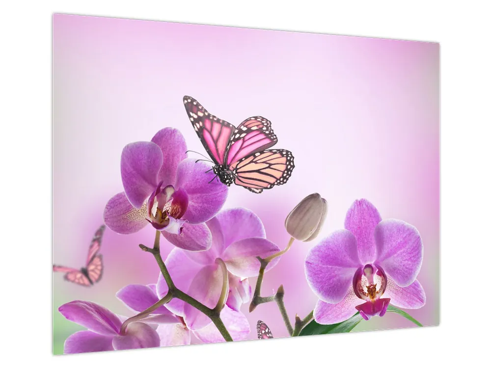 Premium Schilderij – Vlinder op orchidee bloemen, lila