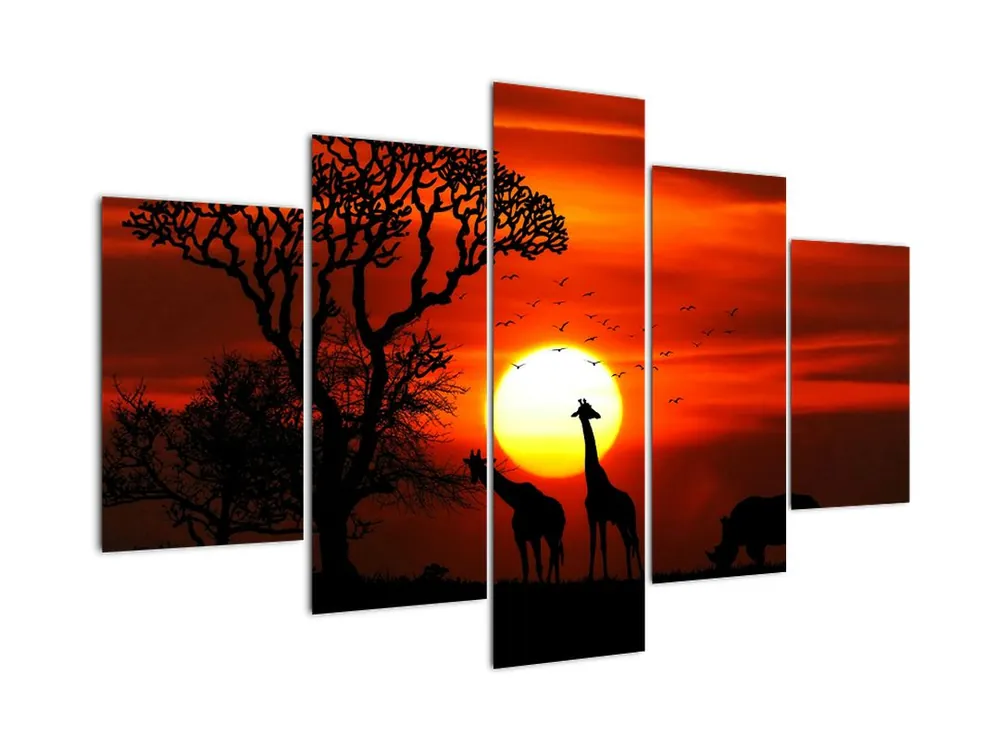 Rabat Schilderij – Silhouetten van dieren bij zonsondergang
