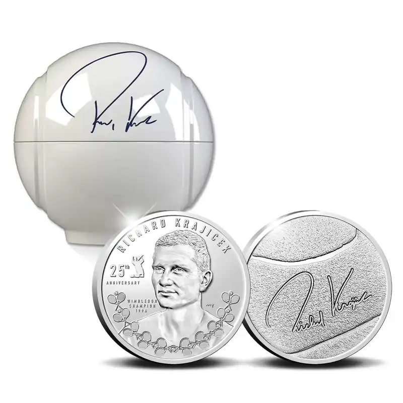 Op 7 juli 2021 is het precies 25 jaar geleden sinds de overwinning van Richard Krajicek op Wimbledon, het oudste en meest prestigieuze tennistoernooi ter wereld. Hij was de allereerste (en nog steeds de enige) Nederlandse man ooit die het grandslamtoernooi won, een hele prestatie! Na zijn overwinning op Wimbledon heeft Krajicek de Krajicek Foundation opgericht om sport en spel onder kinderen en jongeren in aandachtswijken te bevorderen. De Koninklijke Nederlandse Munt lanceert drie uitgiften waarmee we stilstaan bij de impact van Richard Krajicek op het Nederlandse sportlandschap.De Krajicek FoundationIn 1997 gaf Krajicek een tennisclinic in Haagse Schilderwijk. Hier merkte hij dat voor veel kinderen sporten en spelen in een veilige omgeving dicht bij huis niet vanzelfsprekend was. Daarom richtte hij de Krajicek Foundation op. De Foundation heeft als doel om jeugd in aandachtswijken te motiveren om een gezonde leefstijl te ontwikkelen. Daarnaast leren jongeren in de Krajicek Academy zichzelf op een positieve manier te ontwikkelen en het beste uit zichzelf te halen. Ook is Richard Krajicek de bedenker van de jaarlijkse Koningsspelen: het sportieve Oranjefeest waar gemiddeld 1,2 miljoen kinderen aan meedoen. De Koningsspelen vinden traditiegetrouw plaats op de laatste vrijdag voor Koningsdag. Met het oprichten van zijn Foundation en andere initiatieven, zet Krajicek zich al bijna 25 jaar in voor een sportieve, verbonden en sociale samenleving.Ontwerp en verpakkingTer ere van het 25-jarig jubileum van Richard Krajiceks overwinning op Wimbledon heeft de Koninklijke Nederlandse Munt een speciale uitgifte ontworpen. Voor de echte tennisfan en muntliefhebber is de exclusieve Richard Krajicek-uitgifte verkrijgbaar in het Zilver Proof, onze allerhoogste kwaliteit. Op de voorzijde is Krajicek zelf te bewonderen, omkranst door een winnaarskroon van zijn geliefde tennisrackets en -ballen. Daarnaast ziet u in silhouet Krajiceks welbekende overwinningsslide op de knieën over de baan. De teksten benadrukken het jubileum: ‘25th Anniversary’, ‘Wimbledon Champion 1996’. Op de keerzijde staat een tennisbal afgebeeld met de handtekening van Richard Krajicek. Bovendien komt de zilveren uitgifte in een prachtige, luxe munthouder van Royal Delft met Richard Krajiceks handtekening: een aardenwerk tennisbal. Er zijn maar 500 zilveren Richard Krajicek-uitgiften beschikbaar, wees er dus snel bij!Specificaties Royal Delft munthouderMateriaalRoyal Delft aardenwerkGewicht135 gAfmeting71 x 72 mmOplage500 stuksOntwerpHandgemaakt met‘in-glazuur’ transfer