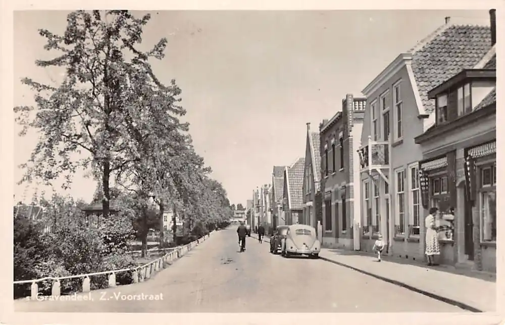 Uitg. Boekh. Fa. A. de Vries en Zn. ‘s-Gravendeel. Gelopen ansichtkaart met postzegel en stempel 1953. Linksachter wat bruine vlekjes.