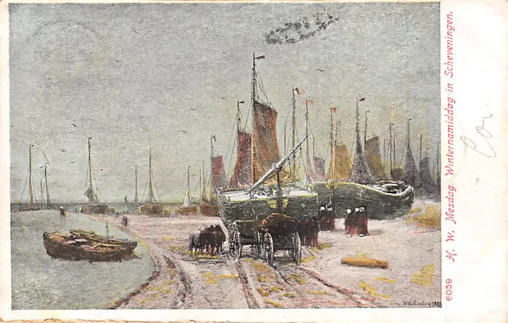 6059. Gelopen ansichtkaart met postzegel en stempels 1904. Randjes ietsje gesleten en albumvouwtjes in hoekjes.