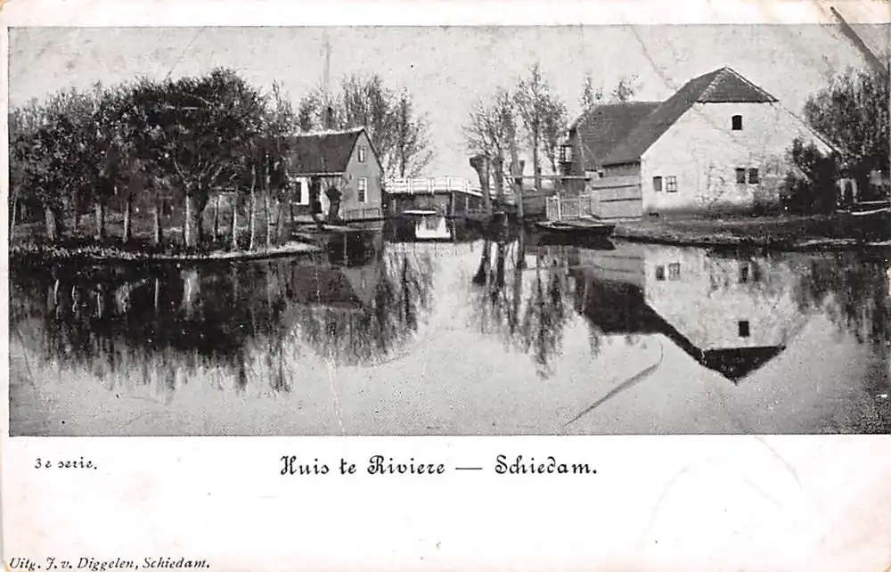 Uitg. J. d. Diggelen, Schiedam. 3e Serie. In 1921 gelopen ansichtkaart uit begin 1900. Zijrandjes onregelmatig.