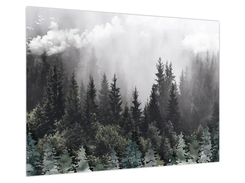 Schilderij – Bos met geïllustreerde elementen Autentyczny