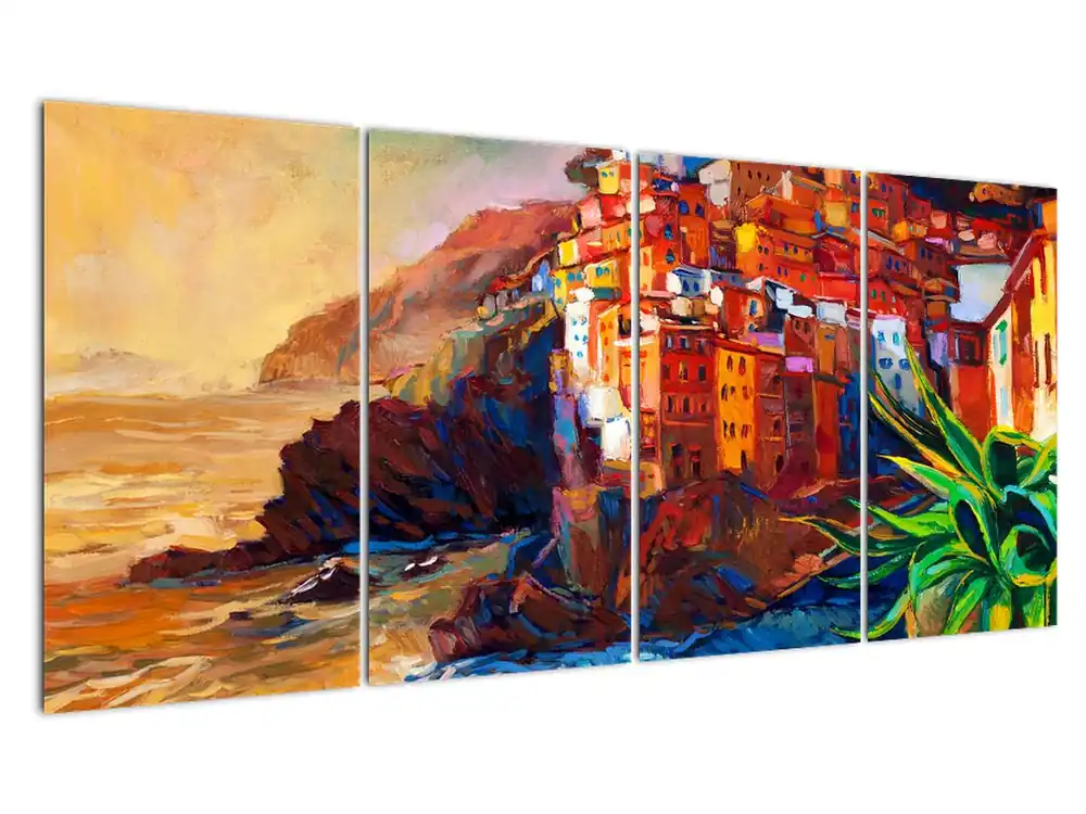 Schilderij – Dorp aan de kust Cinque Terre, Italiaanse riviera, modern impressionisme Oferta