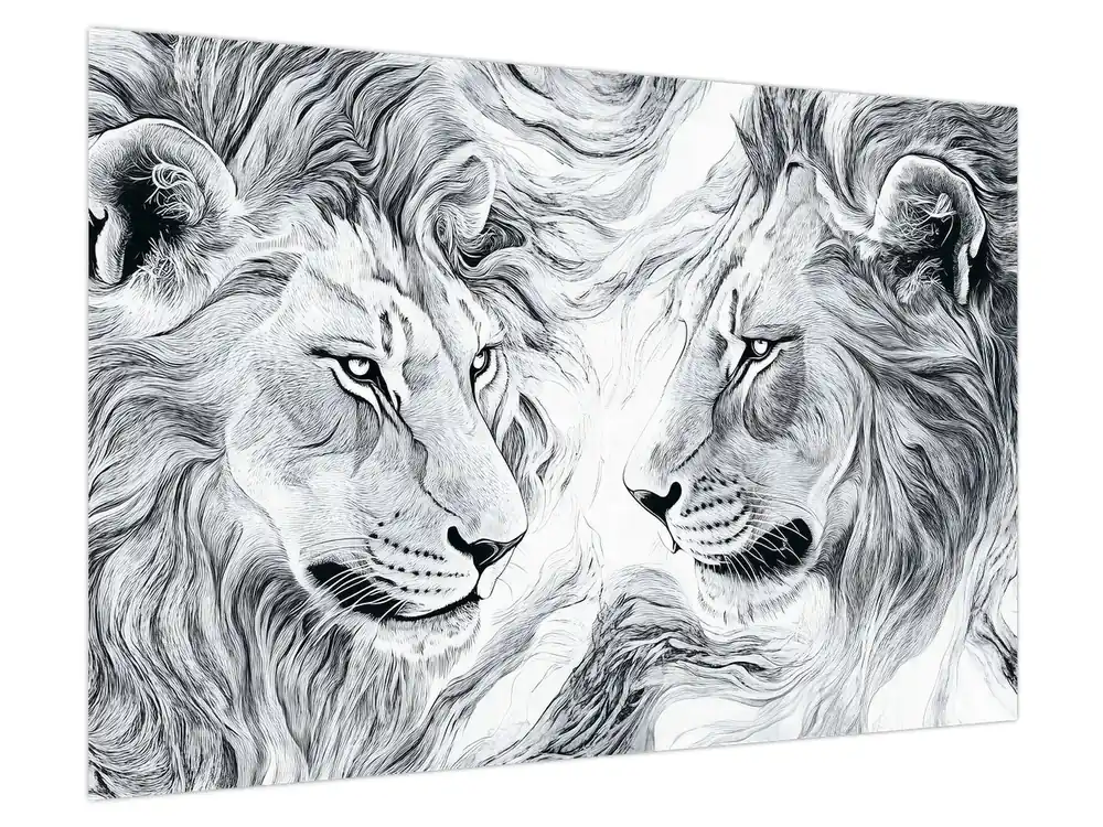 Schilderij – Getekende leeuwenkoppen Kup teraz