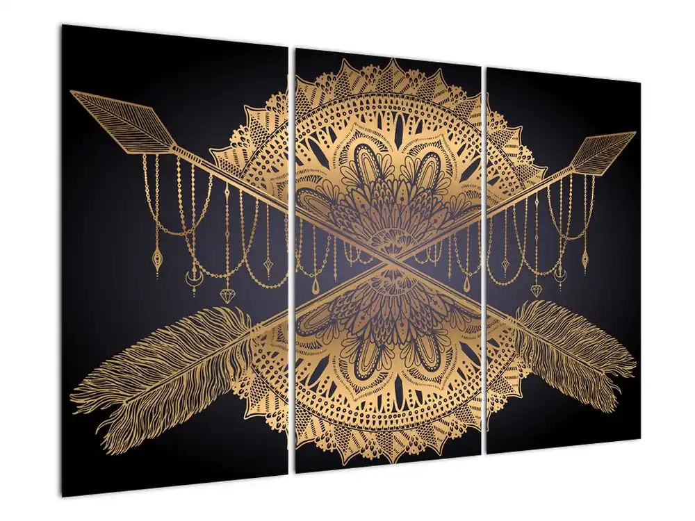 Schilderij – Gouden mandala met pijlen Szybka dostawa
