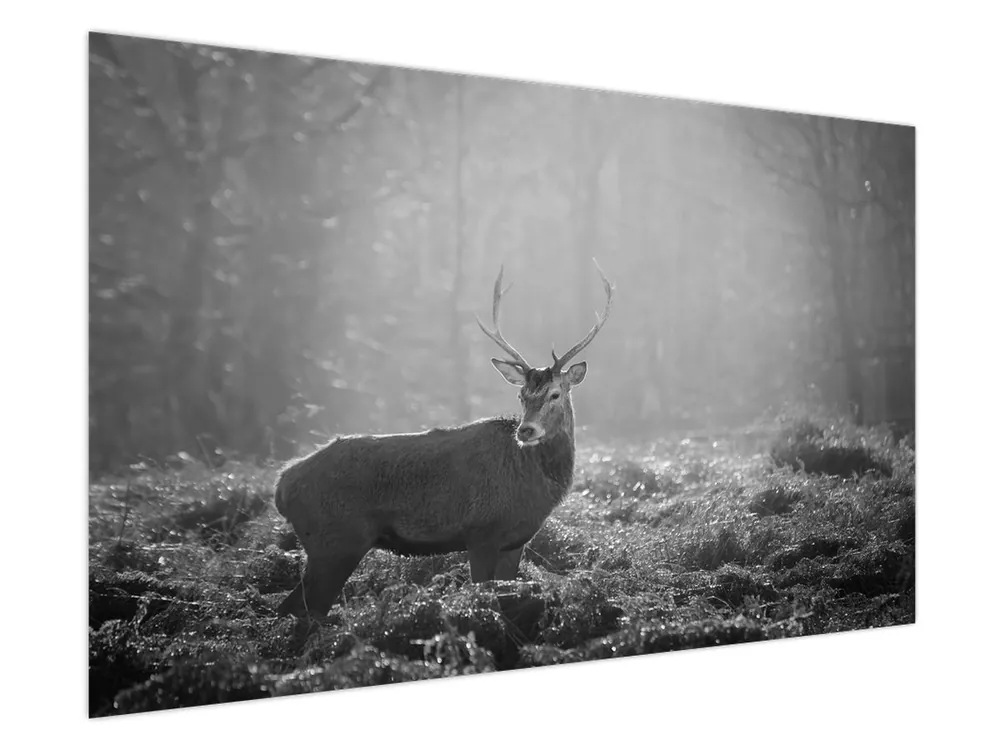Schilderij – Hert in het bos, zwart-wit Zwrot pieniędzy