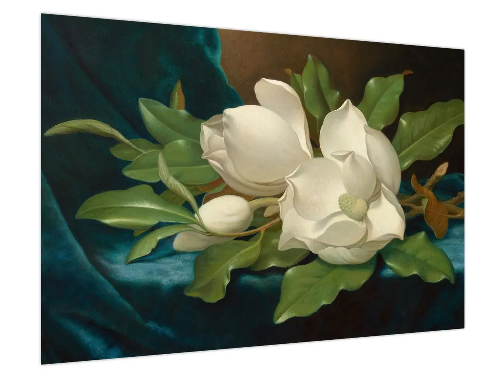 Schilderij – Martin Johnson Heade, Giant Magnolias on a Blue Velvet Cloth, reproducties Promocja