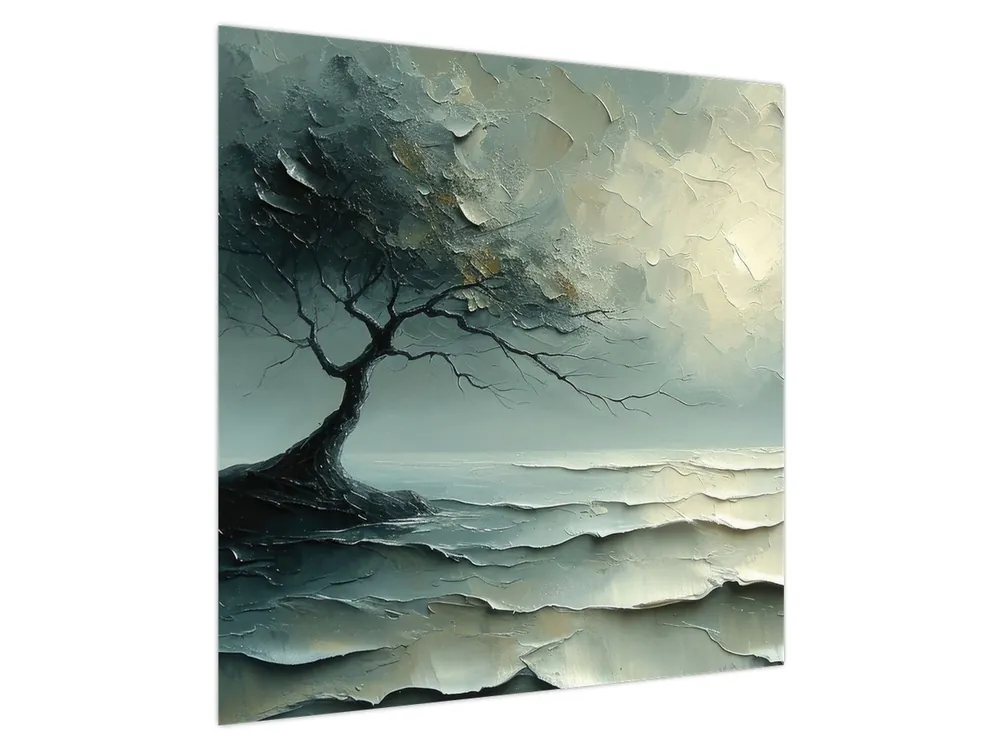 Schilderij – Olieverfschilderij van een boom met de oceaan Kup teraz