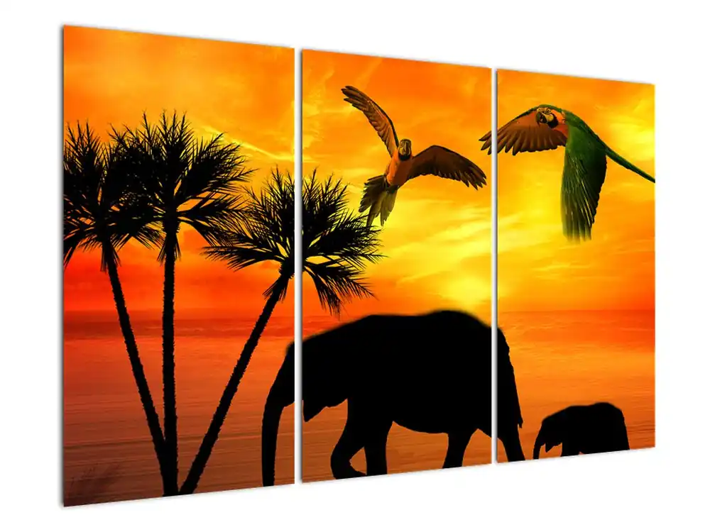 Schilderij – Papagaaien en olifanten Wysoka jakość