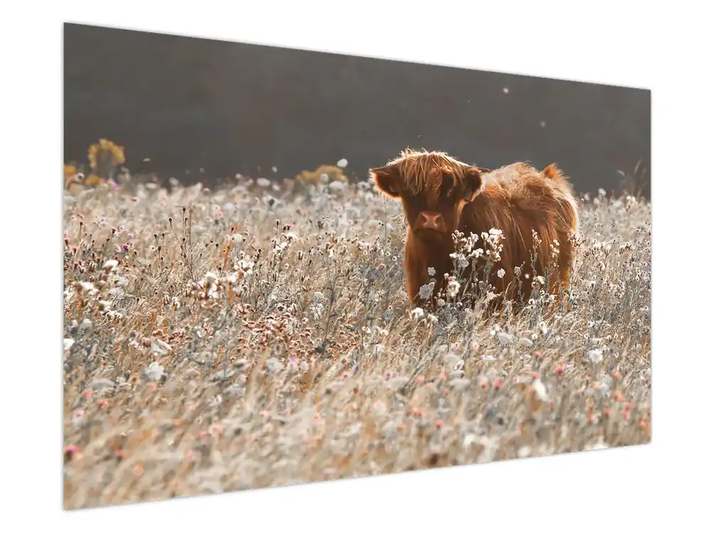 Schilderij – Schotse Hooglander in bloemen Niska cena