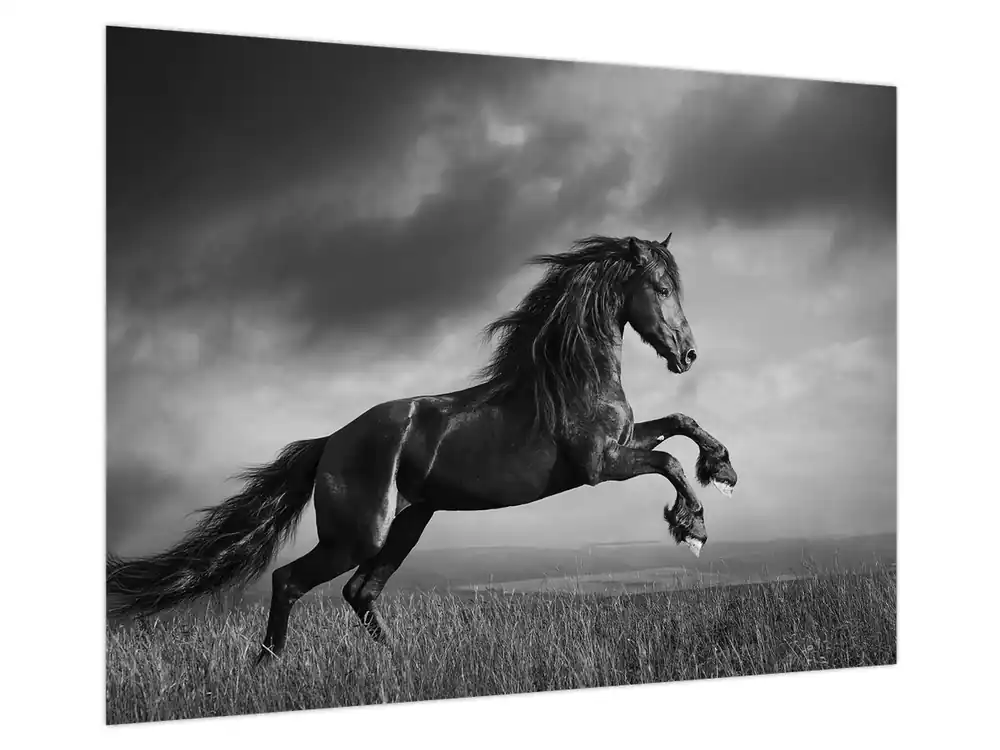Schilderij – Zwart en wit paard Rabat