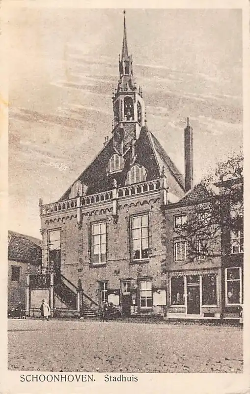 Uitg. W. Timmer, Boekh. Schoonhoven. Militair verzonden ansichtkaart met stempel Schoonhoven.