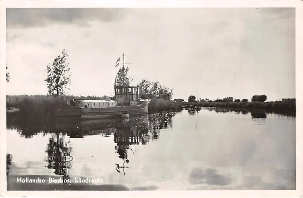 Vacantie Watersportcentrum Biesbos, Sliedrecht. Foto Lux, Sliedrecht. Gelopen ansichtkaart met postzegel en stempel 1951. Albumvouwtjes in hoekjes.