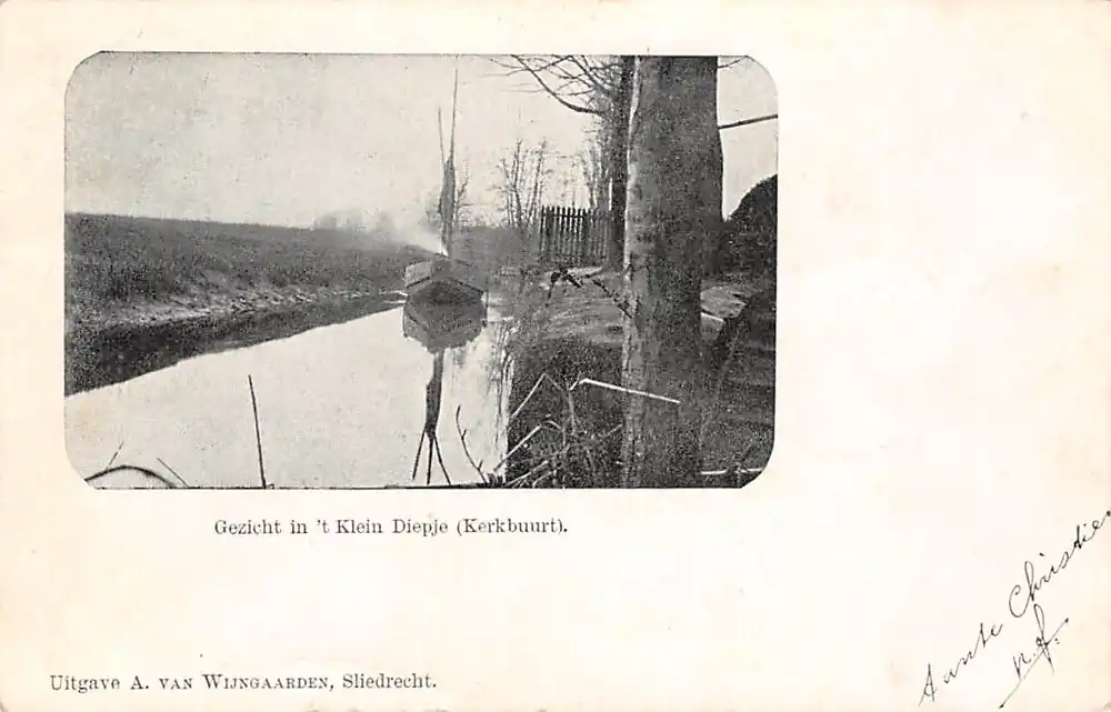 Uitgave A. van Wijngaarden, Sliedrecht. Gelopen ansichtkaart met postzegel en stempels begin 1900.