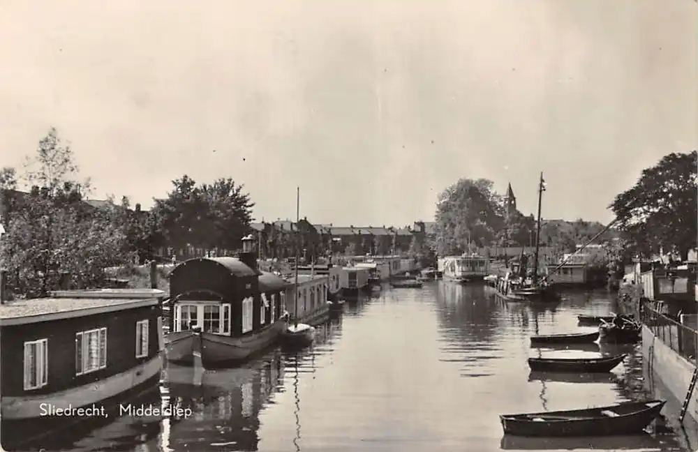 Uitg. Boekhandel A. v. Wijngaarden, Sliedrecht. Gelopen ansichtkaart met stempel 1957; postzegel verwijderd.