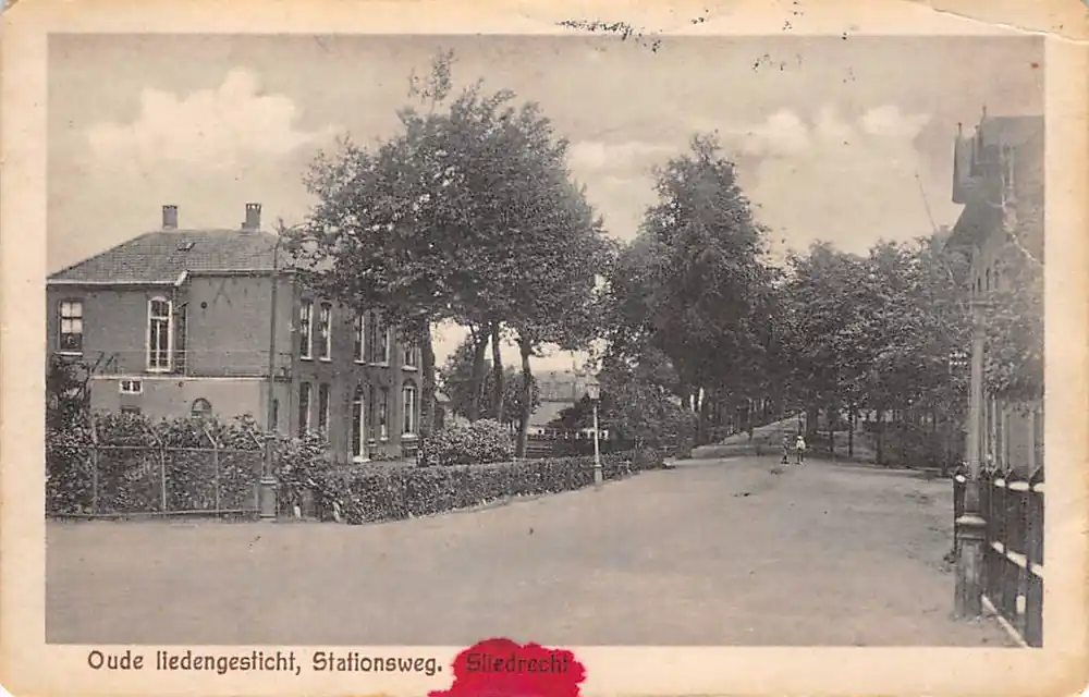 Boekhandel van Wijngaarden, Sliedrecht. Gelopen ansichtkaart stempels 1934; postzegel netjes verwijderd. Rood vlekje onderrandje, knikje wit bovenrandje rechts; hoekjes gebruimt.