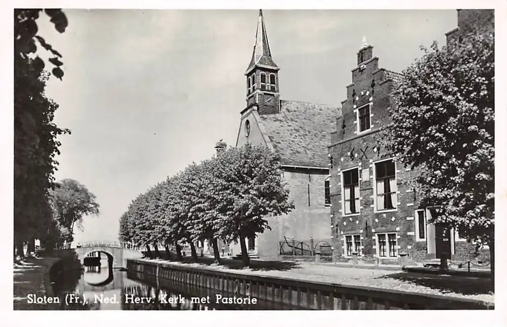 Uitg. E. v. Tromp-Boomsma, Sloten. Ongelopen beschreven ansichtkaart. Lichte albumvouwtjes in hoekjes.