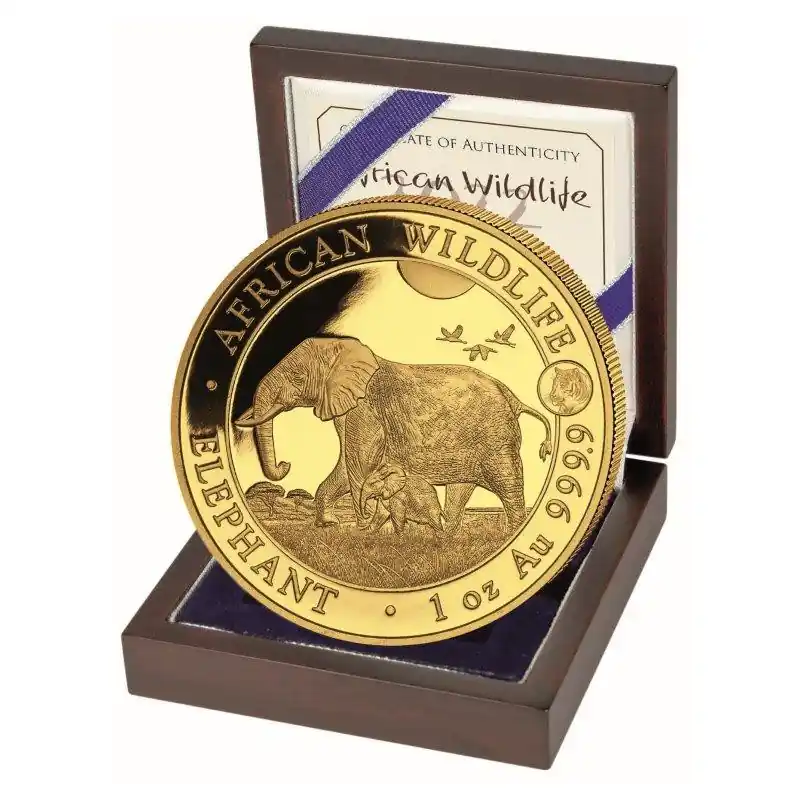 De Somalische Olifant 1 troy ounce gouden munt 2022 wordt geslagen door de Baravian State munthuis. Het ontwerp van deze prachtige munten staat volledig in het teken van een van de grootste dieren ter wereld; de olifant. De munt is onderdeel van de African Wildlife Coin Series en is in trek bij munten verzamelaars over de hele wereld. Op de voorzijde van de munt is een van de meest fascinerende dieren van Afrika afgebeeld, de olifant. De Privy Tiger editie is een speciale gelimiteerde editie uitgebracht in een oplage van slechts 100 munten wereldwijd. De munt wordt geleverd in luxe geschenkdoos.