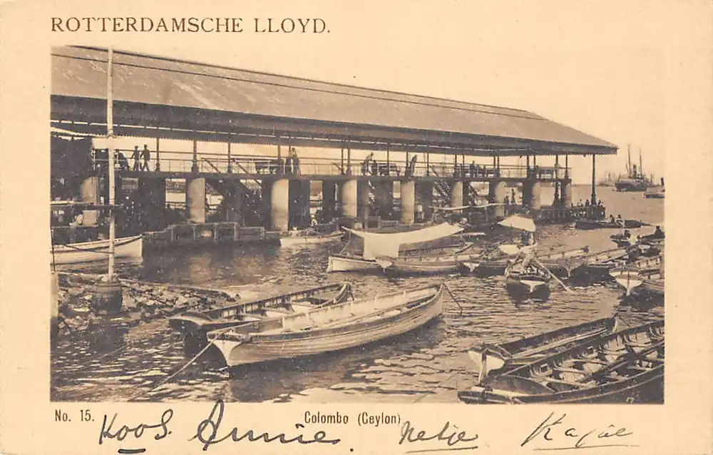 Gelopen ansichtkaart met kartelrandje links. No. 15. Licht knikje wit onderhoekje rechts.