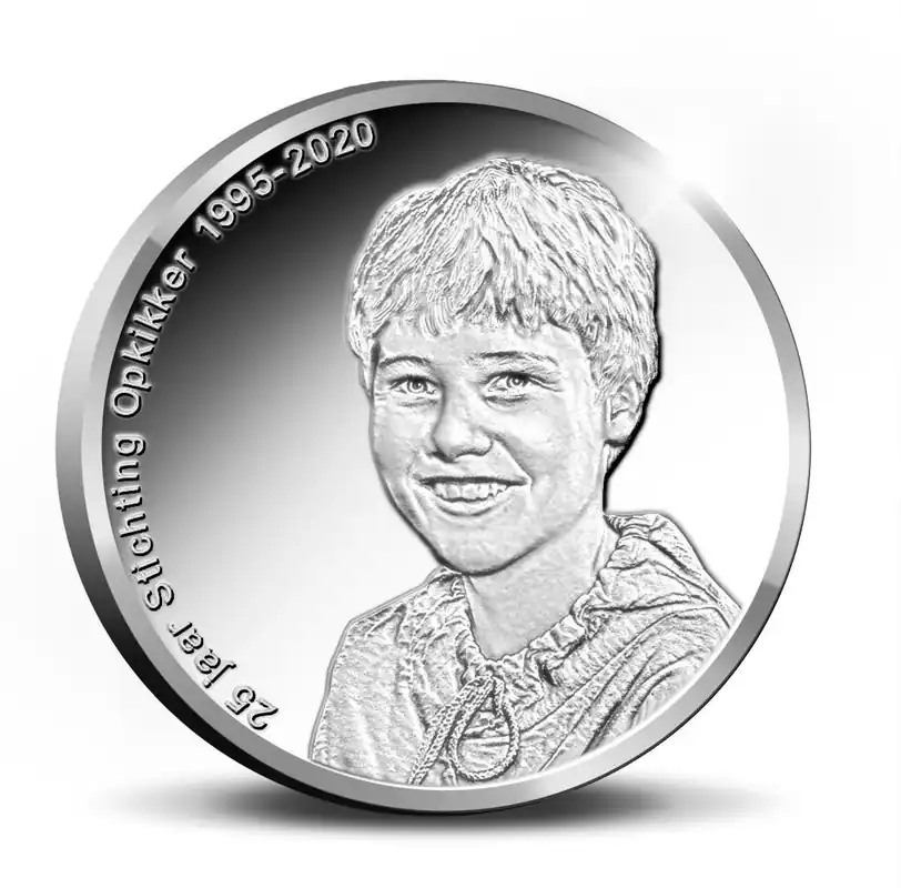Stichting Opkikker bestaat 25 jaar! De Koninklijke Nederlandse Munt staat graag stil bij het zilveren jubileum van deze bijzondere stichting. Het verhaal van Stichting Opkikker begint 25 jaar geleden. Oprichter Ruud Sliphorst regelde met zijn familie een brommerrit om de hartenwens van hun zieke neefje Mario, die zijn zestiende verjaardag niet zou halen, in vervulling te laten gaan. Het werd een dag vol plezier. Iets wat Ruud alle zieke kinderen gunde. In 1995 zat hij daarom met een groep gelijkgestemden rond de tafel bij het AMC (Academisch Medisch Centrum) om dit te organiseren. Stichting Opkikker was een feit en er zouden vele ‘Opkikkerdagen’ plaatsvinden.Tijdens de Opkikkerdagen worden gezinnen met een ziek kind een hele dag van hun zorgtaken verlicht met een speciaal programma, toegesneden op hun specifieke gezinssituatie. Een Opkikkerdag is echter pas het begin! Patiëntjes én hun broertjes en zusjes kunnen ervoor kiezen ambassadeur te worden voor Stichting Opkikker. Zij gaan dan zelf aan de slag om lotgenoten te helpen. De één zamelt mobieltjes in, terwijl de ander een sponsorloop organiseert op school. Alles kan!Eén dag directeur van de KNM! Anne, één van de jonge ambassadeurs van Stichting Opkikker, is voor één dag directeur geweest van de Koninklijke Nederlandse Munt. Onze jongste directeur ooit heeft tijdens deze bijzondere dag opdracht gegeven voor het slaan van de Stichting Opkikker jubileum-uitgifte. Bekijk in de video onderaan de pagina hoe de werkdag van Anne eruit zag!OntwerpTer ere van het zilveren jubileum van Stichting Opkikker is de speciale uitgifte exclusief in sterling zilver verkrijgbaar. Deze uitgifte heeft een streng gelimiteerde oplage van 25 stuks. Op de voorzijde ziet u het portret van Mario, het neefje van Ruud Sliphorst dankzij wie Stichting Opkikker is ontstaan. Het opschrift luidt ‘25 jaar Stichting Opkikker 1995 – 2020’. De keerzijde toont het logo van Stichting Opkikker. De zilveren uitgifte is geslagen in Proof-kwaliteit: de hoogst mogelijke kwaliteit! Proof-uitgiften worden één voor één geslagen en worden alleen met handschoentjes vastgepakt. De uitgifte wordt bovendien geleverd in luxe raamcassette, inclusief genummerd Certificaat van Echtheid.De exclusieve, zilveren uitgifte is een bijzonder eerbetoon aan Stichting Opkikker en het fantastische werk dat zij doen. Op naar de volgende 25 jaar!