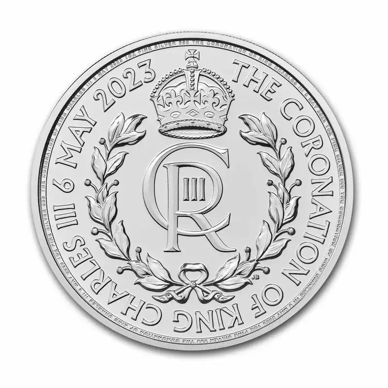 Ter herdenking van de kroning van Zijne Majesteit Koning Charles III heeft The Royal Mint een verzameling kroningsmunten uitgebracht. De collectie bevat drie nieuwe ontwerpen, die verkrijgbaar zijn in een reeks herdenkingsmunten, geslagen in een aantal edities en maten. De zilveren editie is geslagen in een oplage van 150.000 stuks van 31,1034 gram .999 fijn zilver. Op de voorzijde zien de het eerste gekroonde muntportret van King Charles, gemaakt door de Britse beeldhouwer Martin Jennings. Op de voorzijde zien we een ontwerp van John Bergdahl dat het koninklijke cijfer van Zijne Majesteit weergeeft.