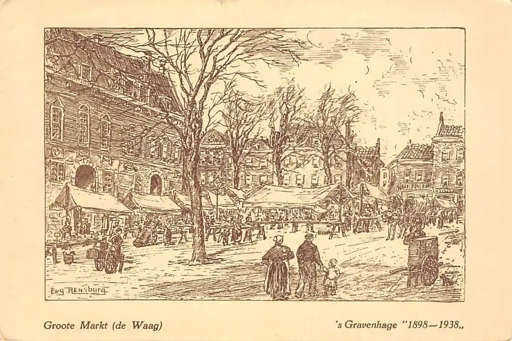 Szybka dostawa \\u2018s-Gravenhage Groote Markt (de Waag) 1938 Illustrator Eugene Rensburg HC33991