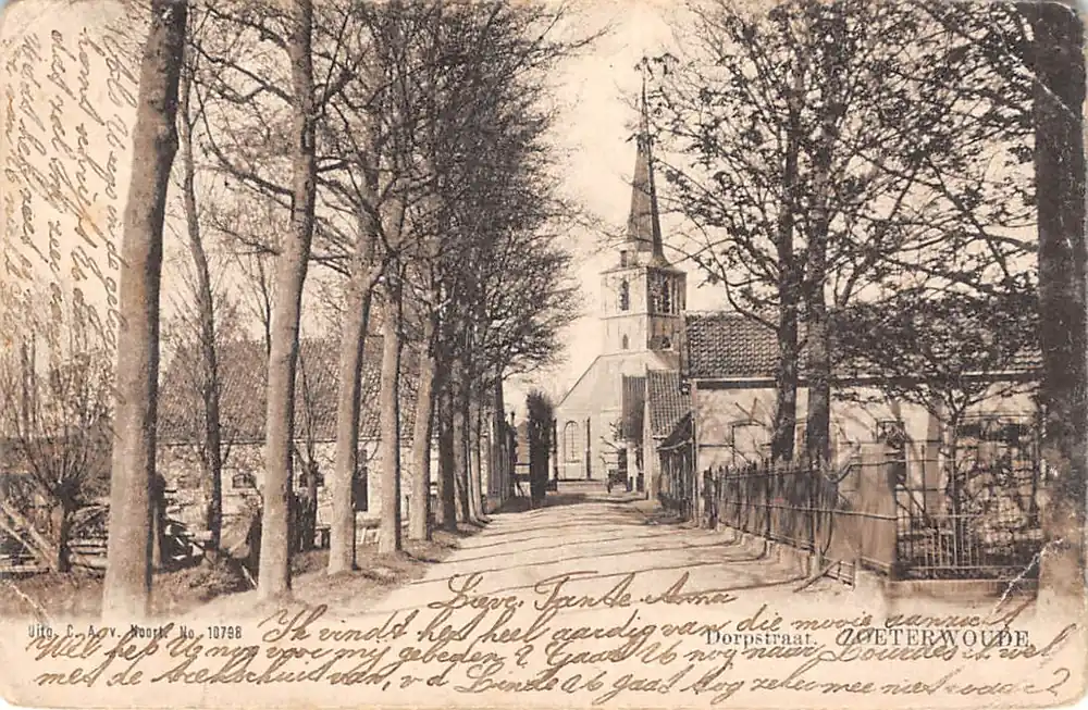 Uitgave C.A. van Noort. No. 10798. Gelopen ansichtkaart met drie postzegels en vier stempels 1908. Hoekjes en randjes gebruikt en knikjes in hoekjes; zie de scans.