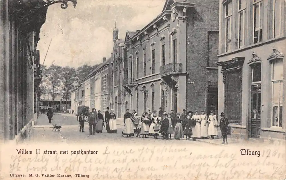 Uitgave M.G. Vattier Kraane, Tilburg. Gelopen ansichtkaart met postzegel en stempels begin 1900.