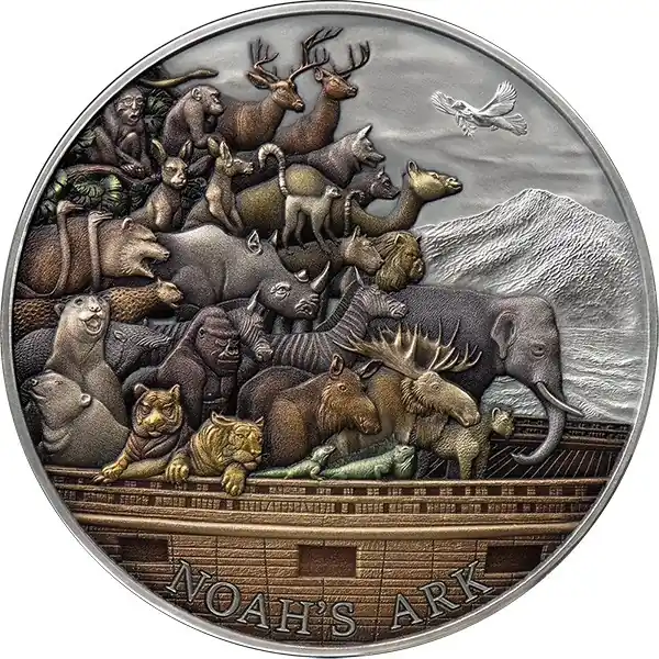 Een van de leerzame verhalen uit de Bijbel – de Ark van Noah – komt tot leven op deze exclusieve zilveren munt geproduceerd volgens de hoogste kwaliteitsnormen! Deze unieke munt legt het beladen moment vast onmiddellijk na de wereldwijde overstroming. De geredde dieren zijn zeer gedetailleerd afgebeeld. Ze staan op de ark van Noach en de duif vliegt met een olijftak om het goede nieuws te symboliseren dat het water zich van de aarde heeft teruggetrokken. De munt wordt geleverd in een unieke houten kist met een bijzondere vorm. Geslagen in een extreem gelimiteerde oplage van 299 stuks wereldwijd in 5 troy ounce fijn zilver.