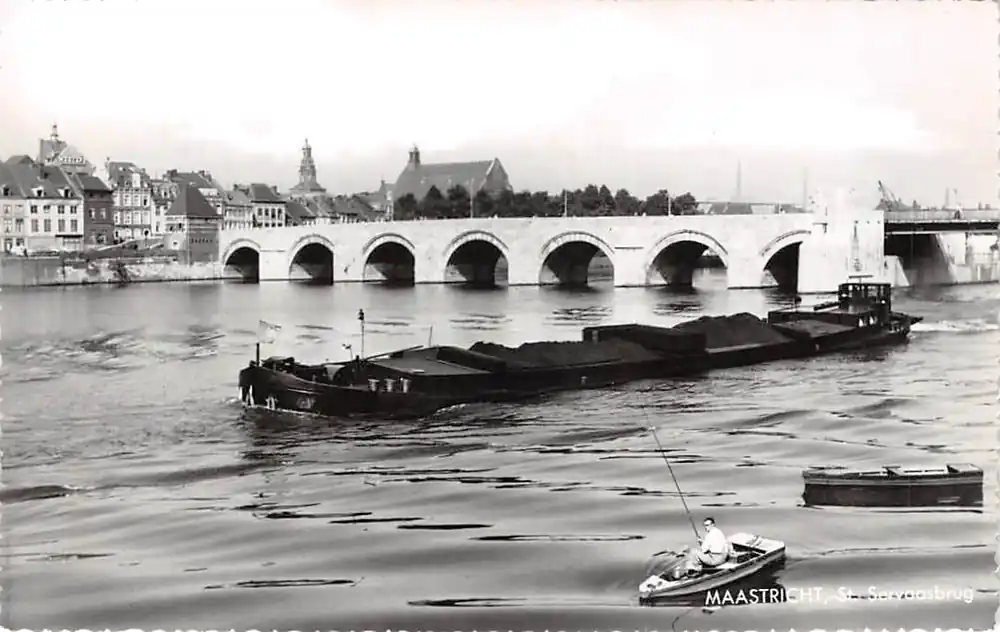 Tylko dziś Maastricht St. Servaasbrug 1965 Binnenvaart schepen Visser in bootje Scheepvaart HC47611