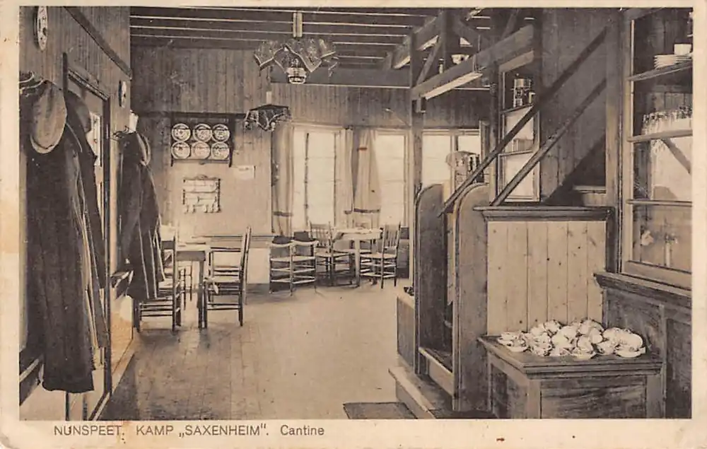 Uitgave Kampeercentrum Saxenheim, Nunspeet. Gelopen ansichtkaart met postzegel en stempel 1929. Licht vouwtje rechterrandje. Vlekkerig.