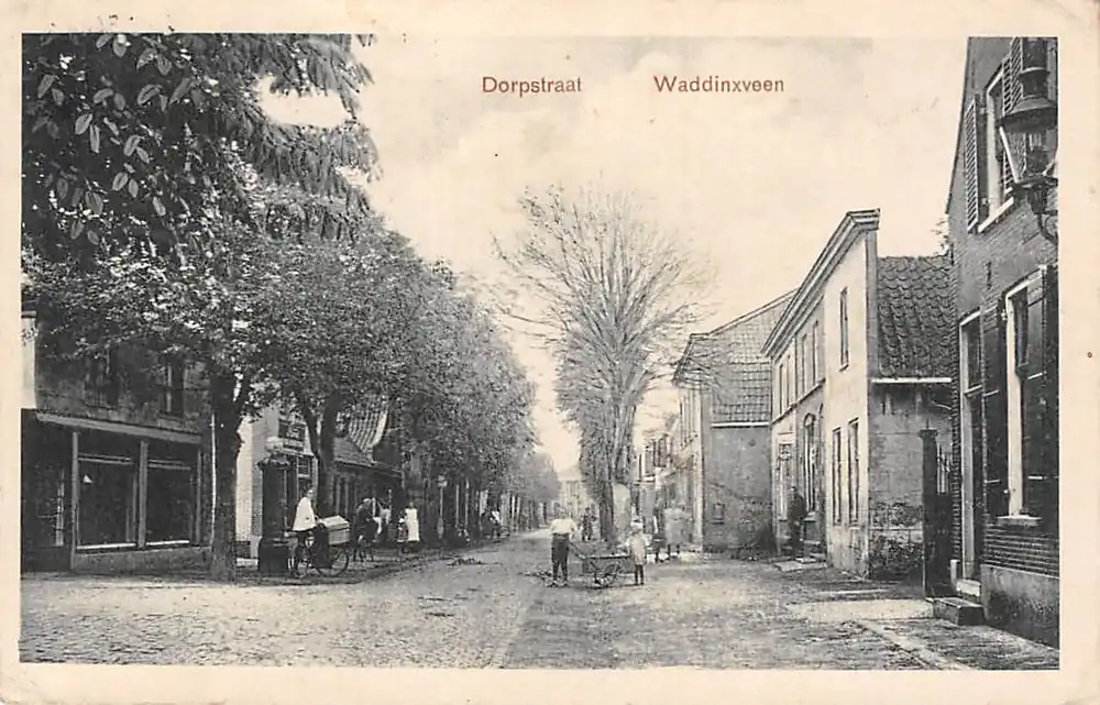Uitgave Boekhandel Noteboom, Waddinxveen. Gelopen ansichtkaart met gedeeltelijke postzegel en stempel 1930. Hoekjes miniem gesleten.