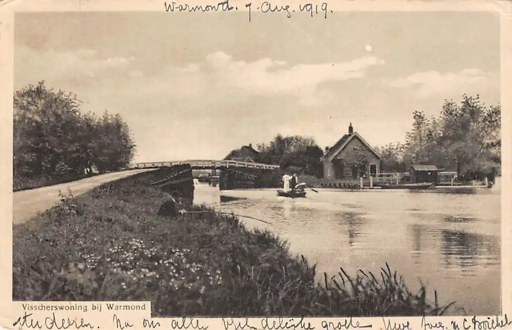 Uitg. C. Zandbergen, fotograaf, Warmond. Gelopen ansichtkaart met stempel 1919. Hoekjes iets gesleten.