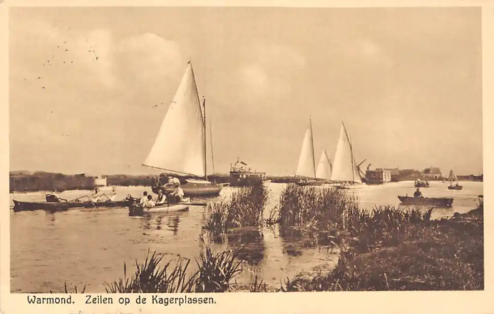 Uitg. Zandbergen, Boek- en foto-Handel, Warmond. Gelopen ansichtkaart met postzegel en stempel 1936.
