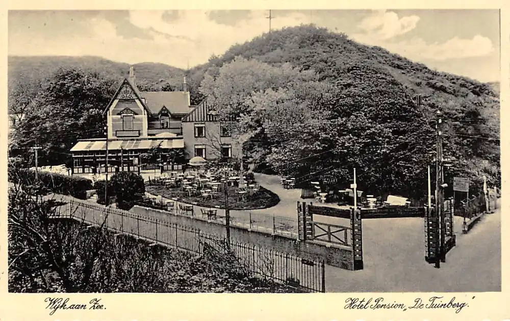 Uitgave Theehuis De Tuinberg, Wijk aan Zee. Gelopen ansichtkaart met postzegel en stempels 1939.