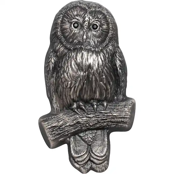 De eerste release van de Mongolië Wildlife 3D-serie is de Ural Owl. 2 troy ounce puur zilver gevormd in reliëf dat je nog nooit eerder hebt gezien. Twee zwarte Swarovski-ogen maken dit een juweeltje in elke muntenverzameling. Wijsheid in je hand! De munt is uitgebracht in een oplage van 499 stuks wereldwijd en wordt geleverd in een luxe geschenkdoos inclusief certificaat van echtheid.
