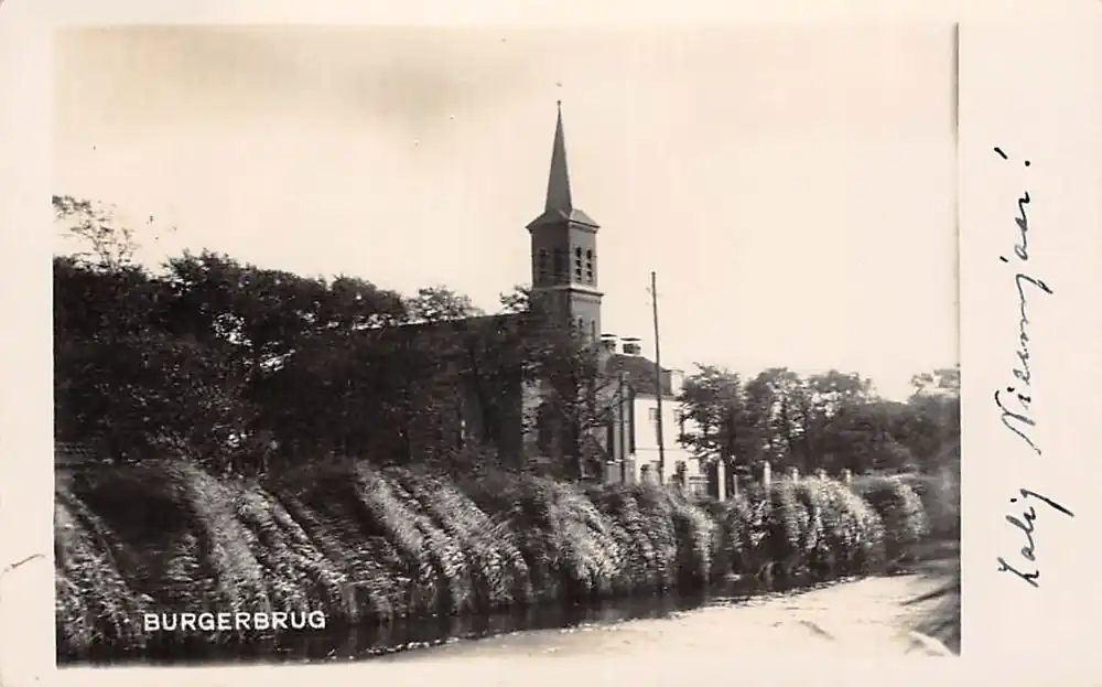 Uitgave D. van der List. Gelopen ansichtkaart met postzegel en stempel Burgerbrug 1931.