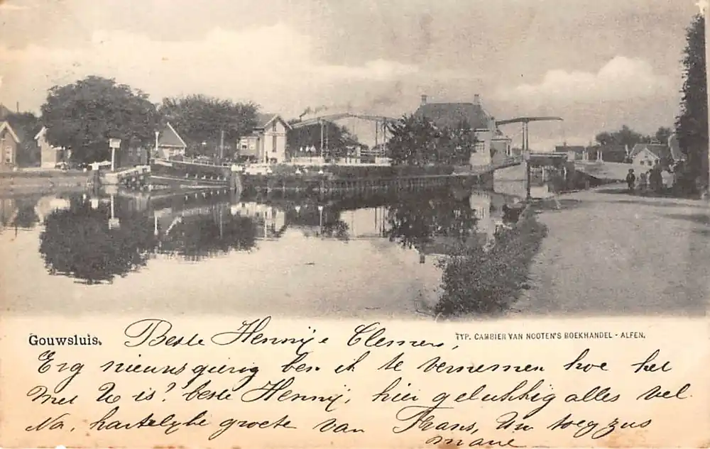 Typ. Combier Van Nootens Boekhandel – Alfen. Gelopen ansichtkaart met postzegel en stempels 1902.