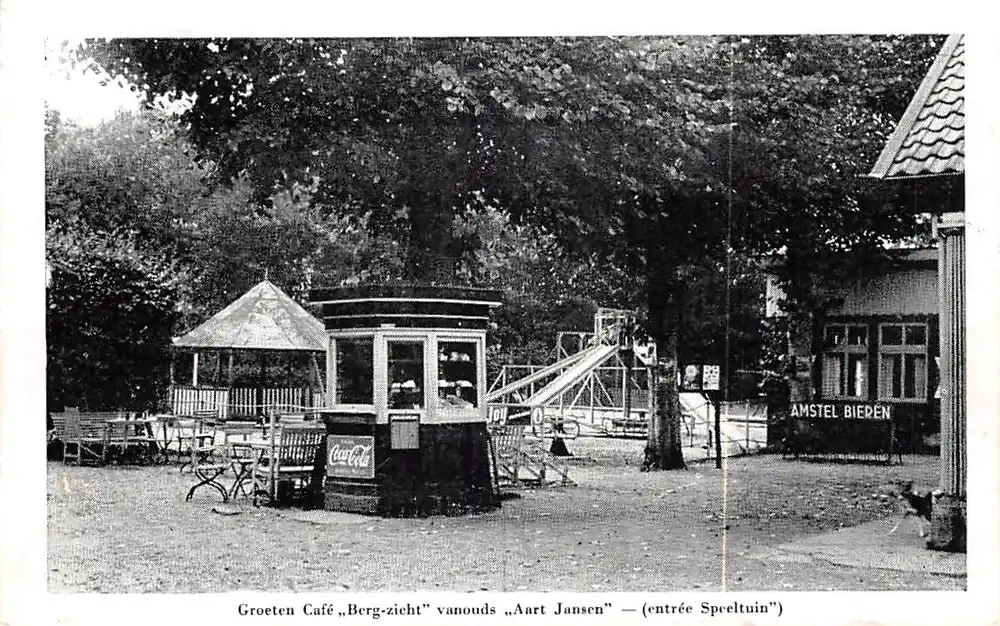Uitgave T. Jansen, Café Bergzicht, Doornseweg 23, Maarn. Gelopen ansichtkaart; postzegel verwijderd.\\r\\n\\r\\nRechts wit lijntje op de kaart; komt door het scannen; zit niet op de kaart.