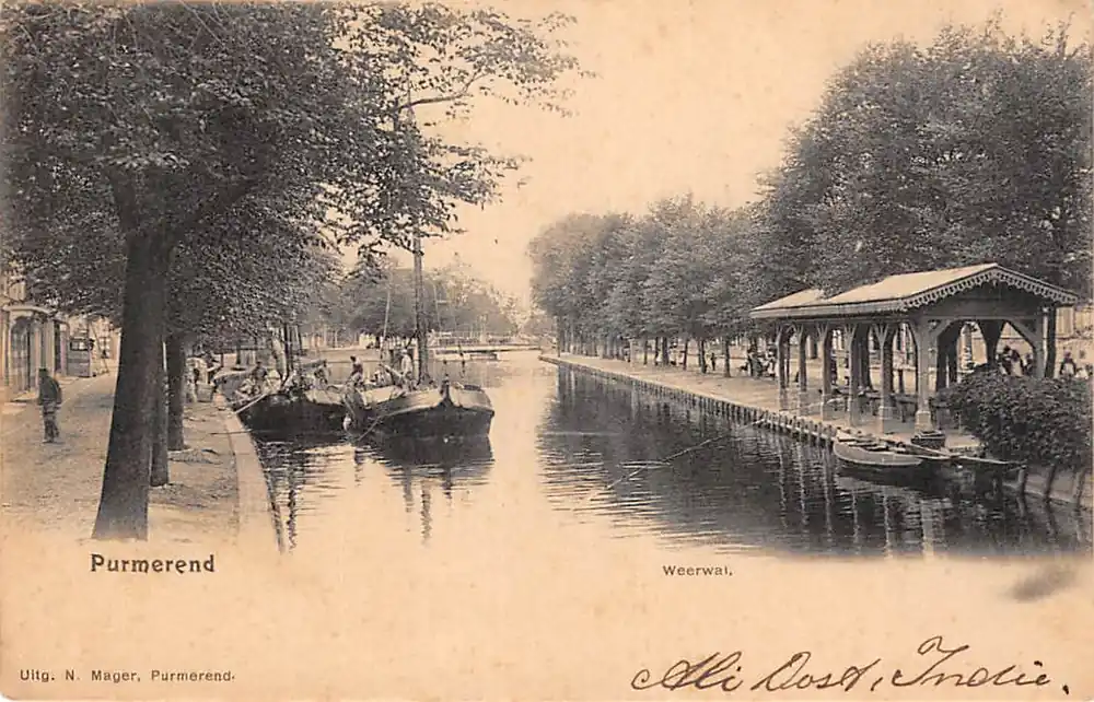 Uitg. N. Mager, Purmerend. Gelopen ansichtkaart met postzegel en stempels 1902. Minieme vouwtjes hoekjes links.