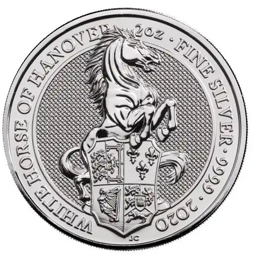 De nieuwste release uit de populaire Queens Beasts serie. De laatste release omvat The White Horse of Hanover. Net zoals zijn voorgangers is deze bijzondere munt geslagen door de Britse Royal Mint en bevat deze een zuiverheid van 999.9. Deze zilveren 2 troy ounce munten worden altijd geleverd in beschermende capsule.
