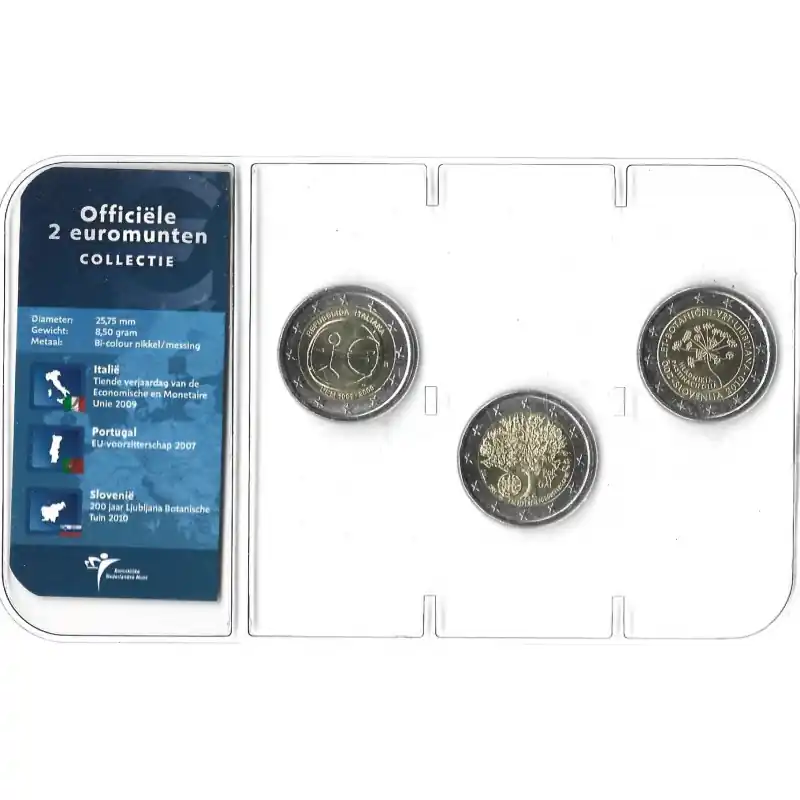 Officiële 2 Euromunten collectie KNM UNC Italië 2009 – Portugal 2007 – Slovenië 2010