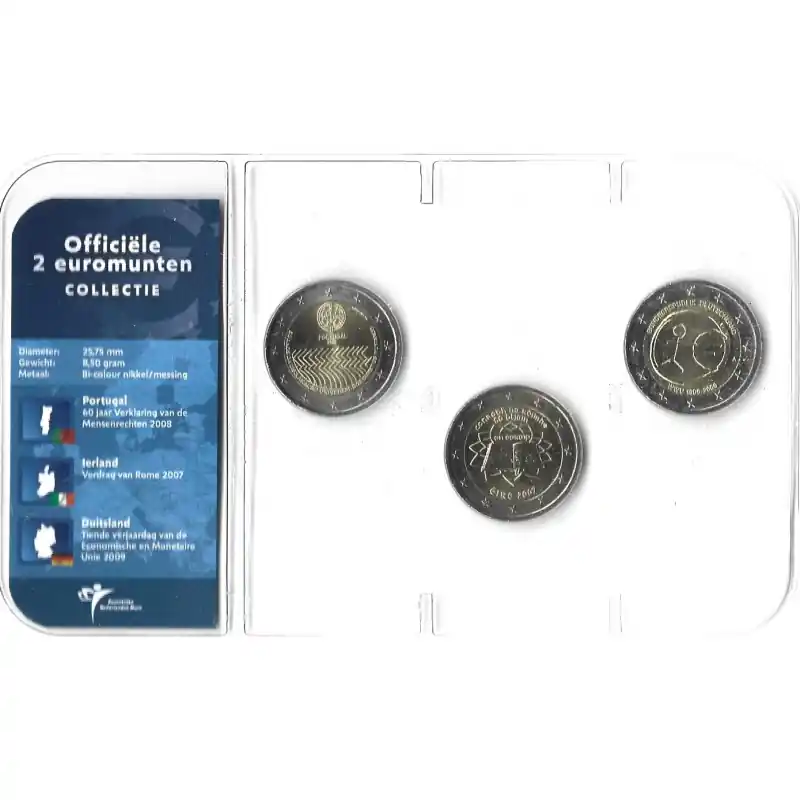 Officiële 2 Euromunten collectie KNM UNC Portugal 2008 – Ierland 2007 – Duitsland 2009