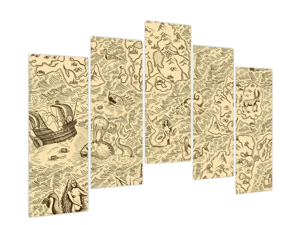 Zamów teraz Schilderij – Vintage kaart, illustraties