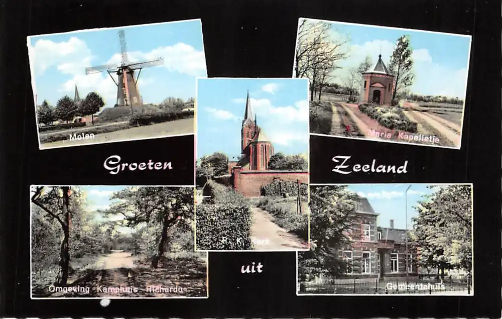 Zeeland (NB) Molen Maria Kapelletje R.K. Kerk Omgeving Kamphuis Richardo en Gemeentehuis Maashorst Peel Noord-Brabant HC47089 Kup teraz