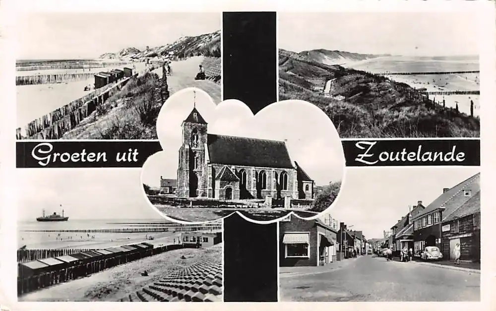 Uitg. Boekhandel Joh. Kruit, Zoutelande. 162. Gelopen ansichtkaart met postzegel en stempels.